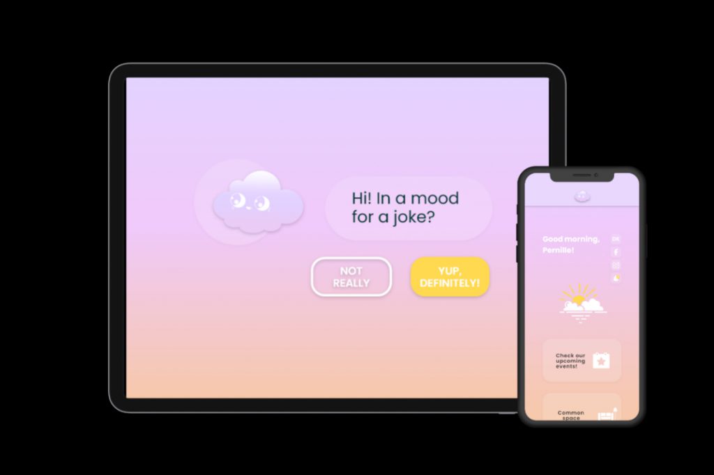 The complex digital solution consists of interactive screen and mobile app designed for tenants of Grundfos Kollegiet to help them get an easy access to provided help and all facilities