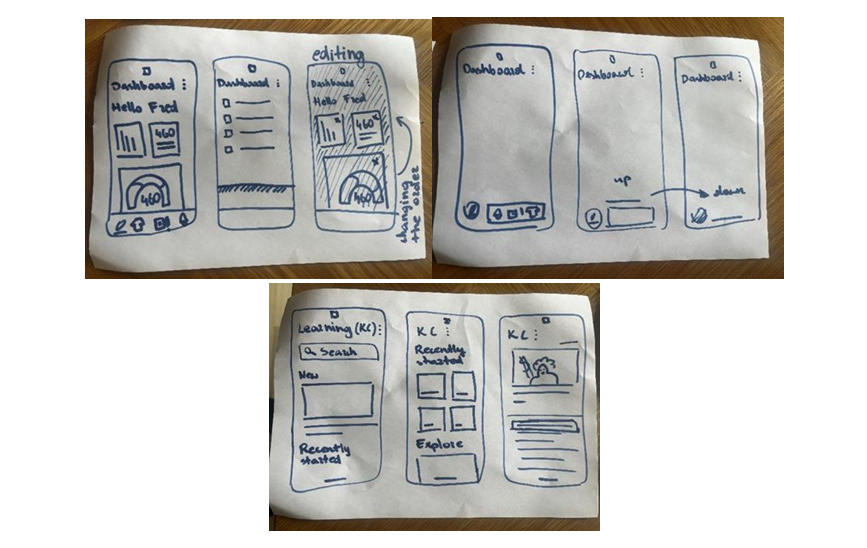 In the first subphase of designing, I focused on sketching all the elements that my team wanted to included in our mobile app.