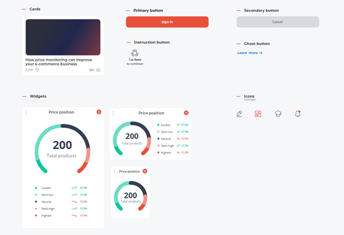 While still discussing the details of the features, I put together style tiles using existing design elements and making a few adjustments to fit them into the app (all the PriceShape’s products where designed mainly for desktop).